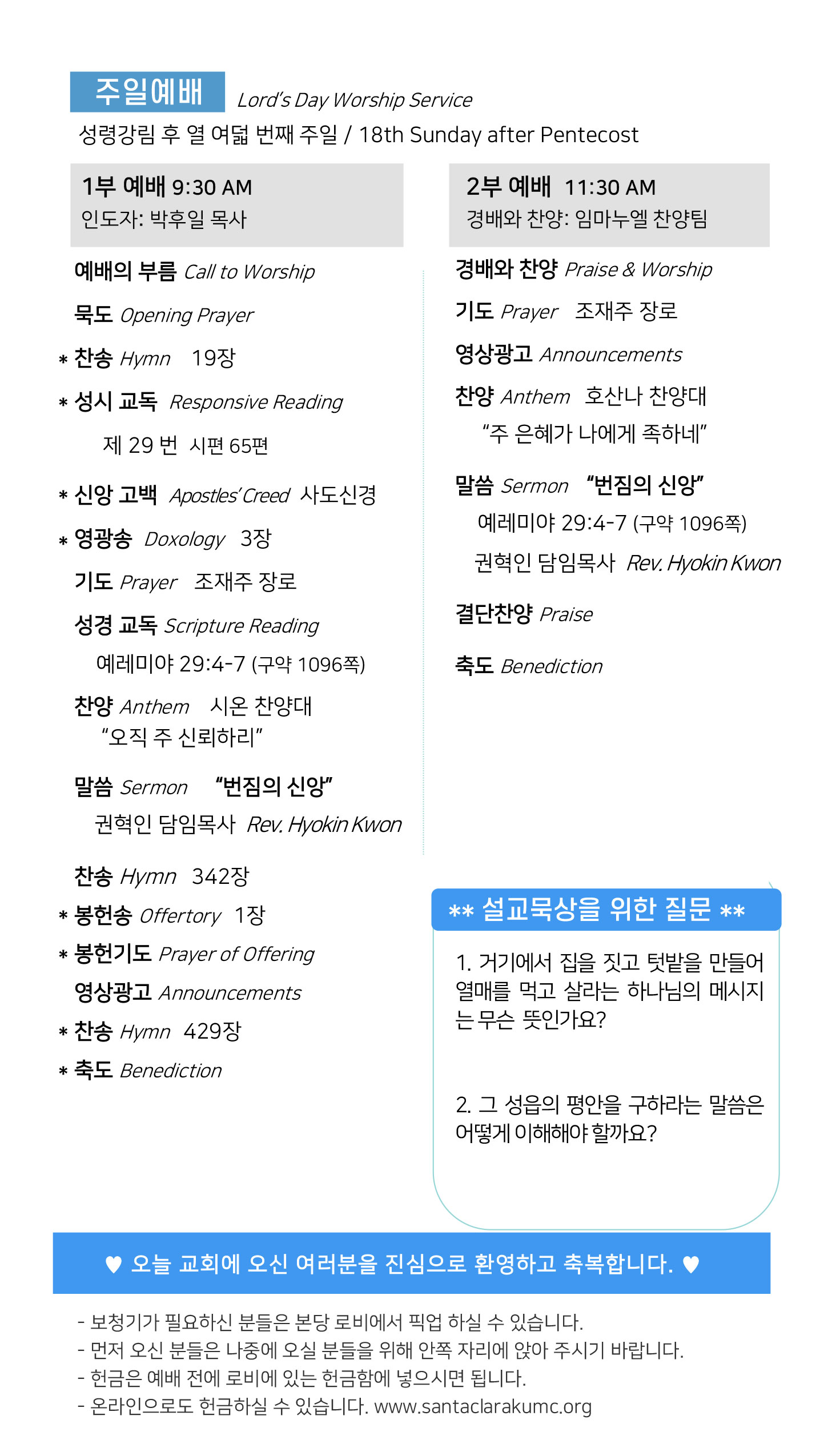 금주의 주보 1 페이지
