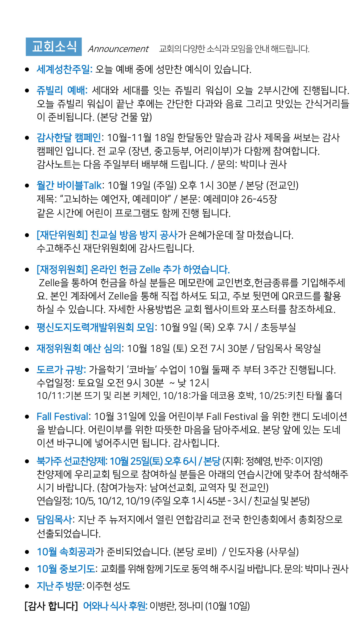 교회소식