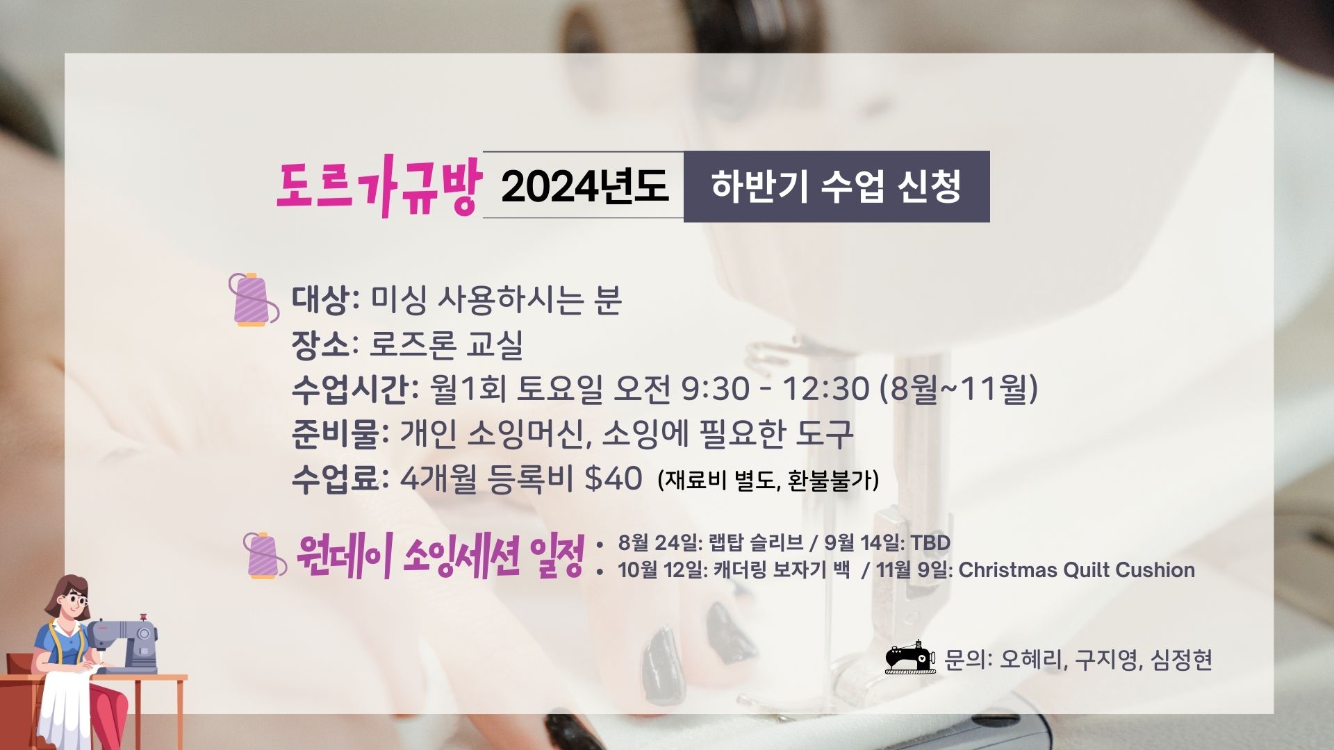 도르가 규방 하반기 수업 안내 Publish on April 23,2024 | 관리자