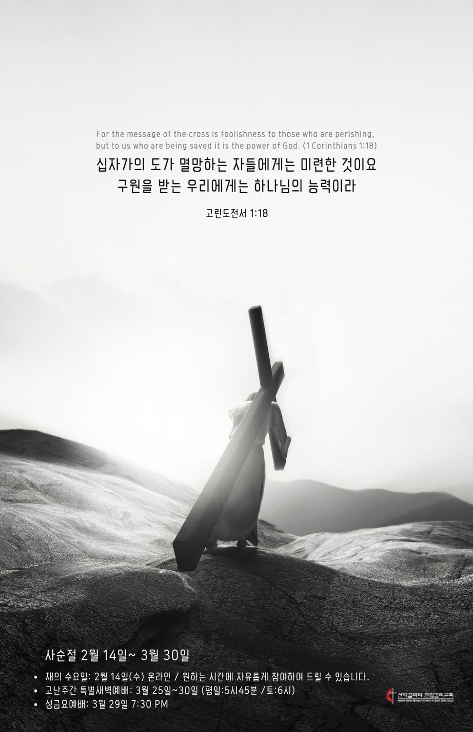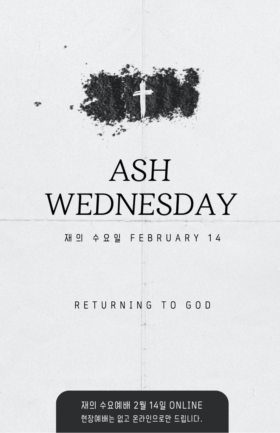 - 재의 수요일 예배: 2월 14일(수) 온라인으로만 진행됩니다.