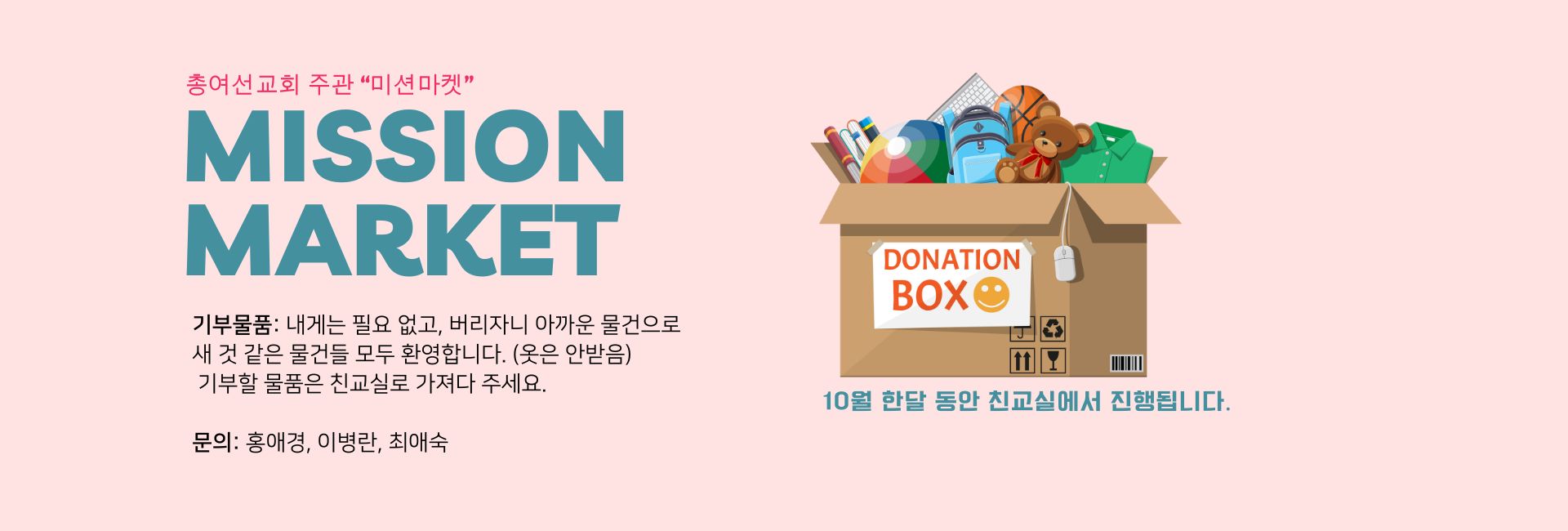 총 여선교회에서 주최하는 미션마켓이 10월 한달동안 친교실에서 진행됩니다.