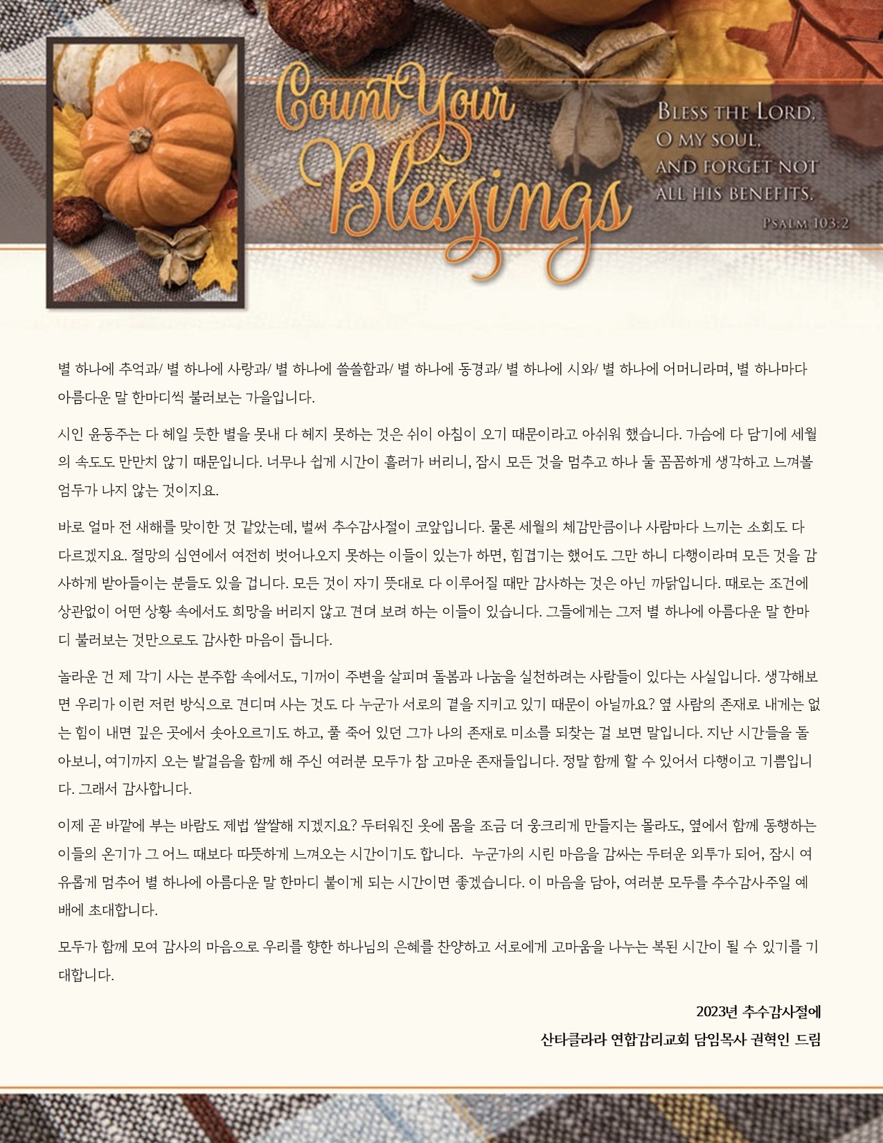 [목회서신] 2023 추수감사절