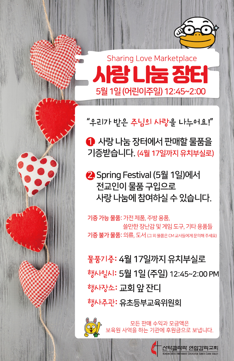 (벼룩시장에 나온 물품은 cash로 구매 하실 수 있습니다.)