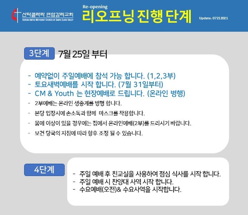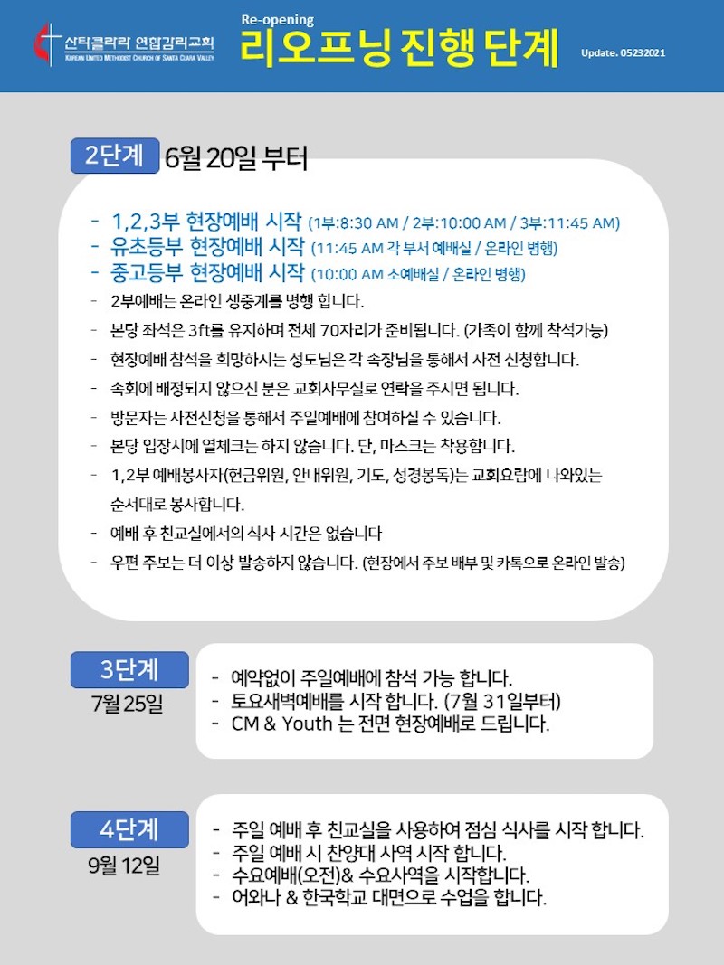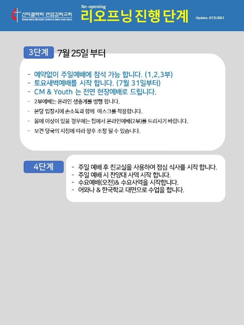 Re-opening 3단계 안내 Publish on August 07,2021 | 관리자