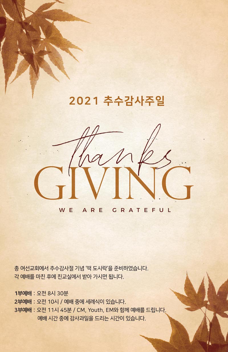 추수감사주일 예배 안내 Publish on November 20,2021 | 관리자