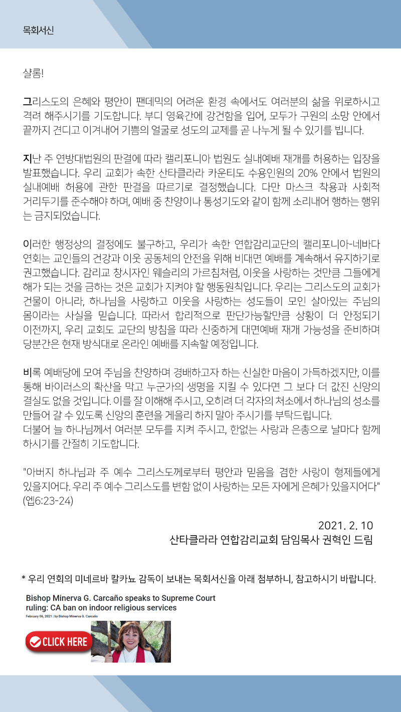 [목회서신] 2021년 2월 10일 Publish on February 10,2021 | 관리자