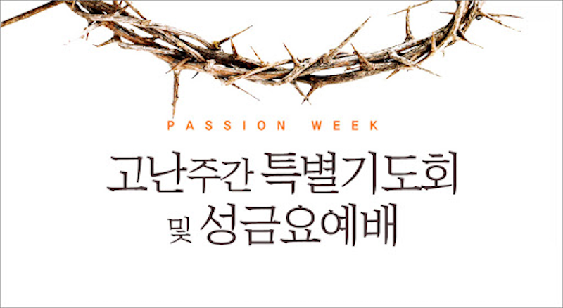 ▶ 성금요예배: 4월 2일 (금요일) 7:00 PM / 유튜브 방송 (링크는 추후 공개)