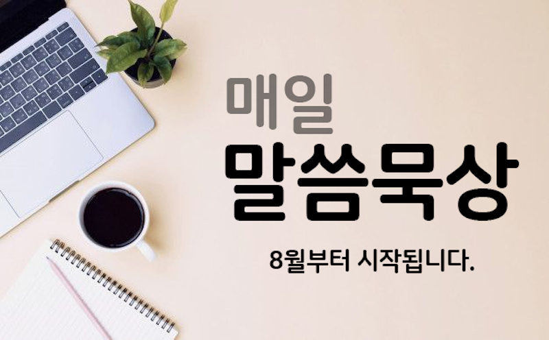 성도님들의 영적 양식을 위해 담임목사님께서 보내드리는 ‘매일 말씀묵상’을 8월 3일 시작합니다.