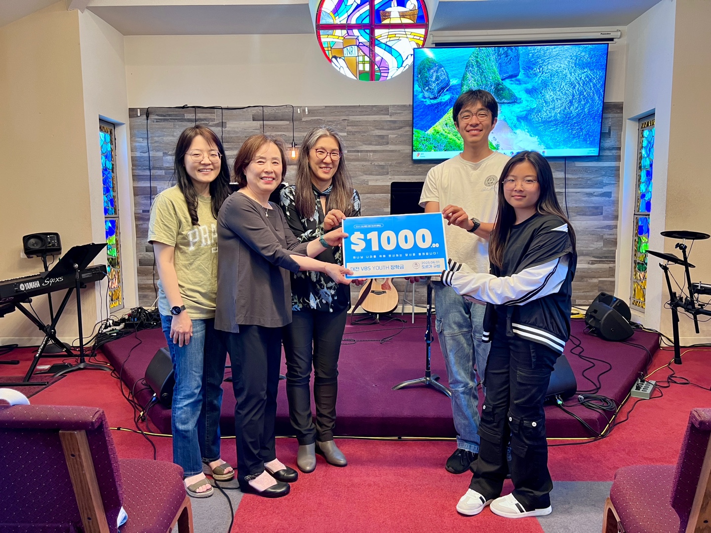 대전 VBS 유스부에 각 천불씩 장학금으로 전달(작년에는 나바호 선교에 2천불 전달) 하였습니다.
