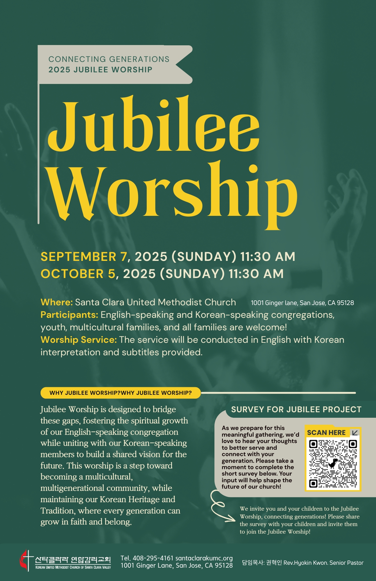 설문조사에 참여해주세요: 여러분들의 자녀세대, 그리고 영어권 세대에 아래의 설문링크를 보내드리시고, 쥬빌리워십에 초대해주세요.
