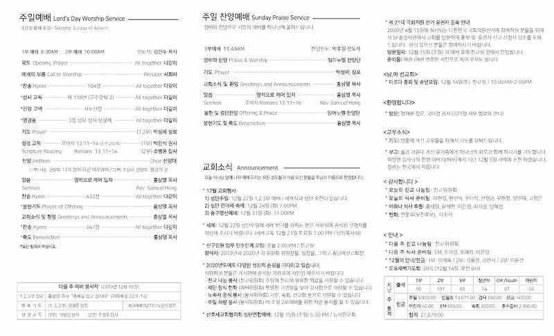 [주보] 2019년 12월 8일 Publish on December 08,2019 | 관리자 페이지 정보 작성자 관리자 댓글 0건 조회 7,106회 작성일 19-12-08 10:25 목록 본문 이전글[교회소식] 2019년 12월 15일 19.12.17 다음글[교회소식] 2019년 12월 8일 19.12.08 댓글 0 댓글목록 등록된 댓글이 없습니다. 목록
