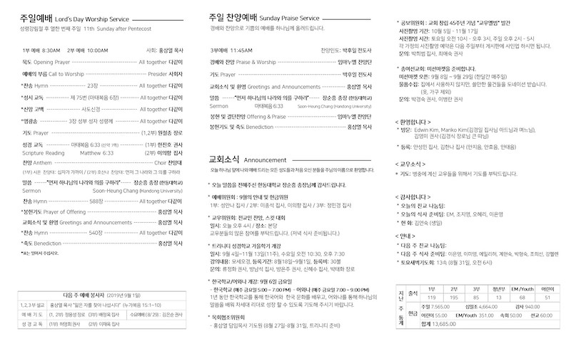 [주보] 2019년 8월 25일 Publish on September 12,2019 | 관리자