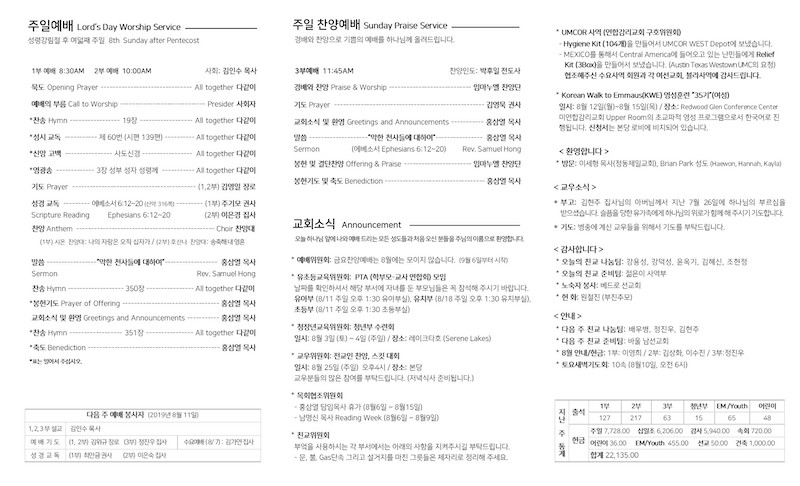 [주보] 2019년 8월 4일 Publish on August 06,2019 | 관리자 페이지 정보 작성자 관리자 댓글 0건 조회 6,747회 작성일 19-08-06 12:23 목록 본문 이전글2019년 8월 4일 교회소식 19.08.06 다음글[주보] 2019년 7월 28일 19.08.06 댓글 0 댓글목록 등록된 댓글이 없습니다. 목록