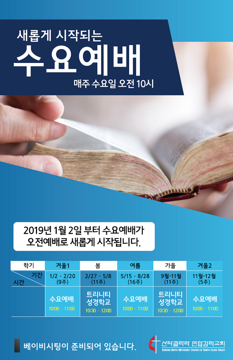 2019 수요예배 - 오전예배로 새롭게 시작합니다. Publish on January 09,2019 | 관리자