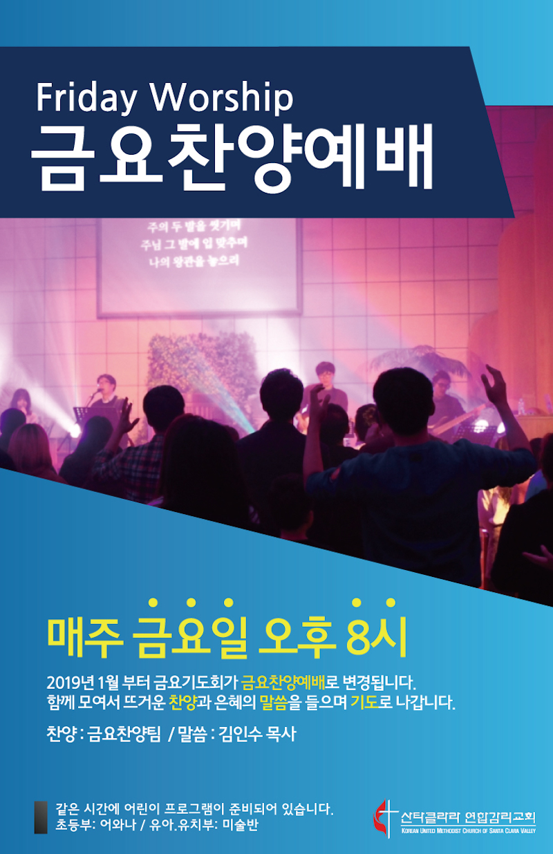 매주 금요일 저녁 8시에 금요찬양예배가 드려집니다.
