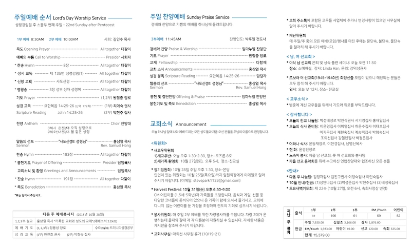 2018년 10월 21일 Publish on October 28,2018 | 교회사무실 페이지 정보 작성자 교회사무실 댓글 0건 조회 6,436회 작성일 18-10-28 10:43 목록 본문 이전글2018년 10월 28일 18.10.28 다음글2018 Harvest Festival 18.10.25 댓글 0 댓글목록 등록된 댓글이 없습니다. 목록