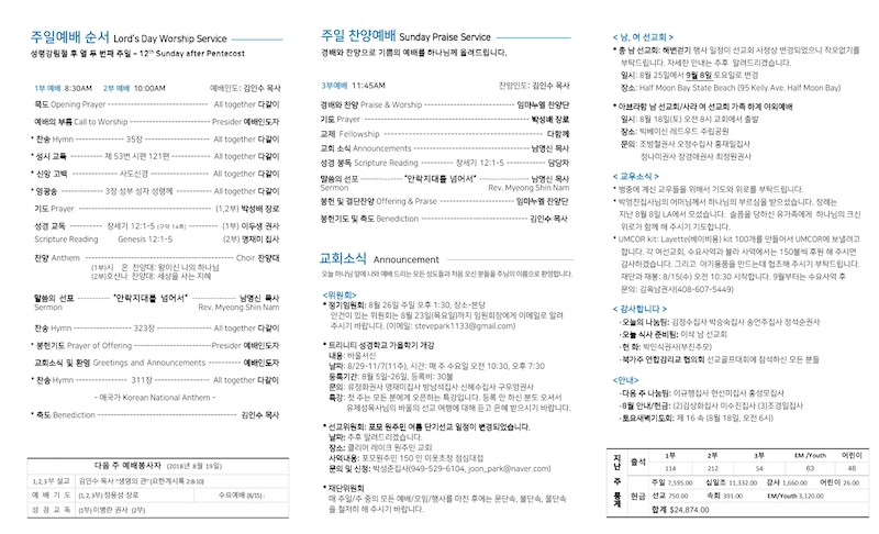 2018년 08월 12일 Publish on August 12,2018 | 교회사무실 페이지 정보 작성자 교회사무실 댓글 0건 조회 6,285회 작성일 18-08-12 11:39 목록 본문 이전글북가주 한인코커스 주관 선교디너가 있습니다. 18.08.18 다음글2018년 08월 05일 18.08.07 댓글 0 댓글목록 등록된 댓글이 없습니다. 목록