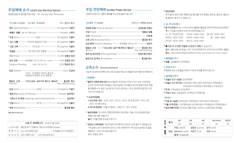 2018년 09월 23일 Publish on September 23,2018 | 교회사무실 페이지 정보 작성자 교회사무실 댓글 0건 조회 6,226회 작성일 18-09-23 12:42 목록 본문 이전글2018년 09월 30일 18.09.30 다음글2018년 09월 16일 18.09.16 댓글 0 댓글목록 등록된 댓글이 없습니다. 목록