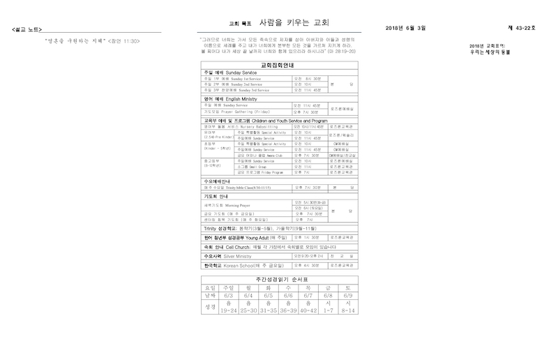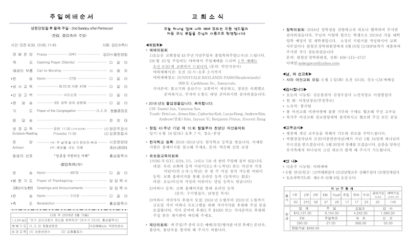 2018년 06월 03일 Publish on June 03,2018 | 교회사무실 페이지 정보 작성자 교회사무실 댓글 0건 조회 6,300회 작성일 18-06-03 11:14 목록 본문 이전글선교보고 :: 6월 13일 수요예배시 (조진희선교사) 18.06.13 다음글북가주여선교회 선교찬양제 18.05.29 댓글 0 댓글목록 등록된 댓글이 없습니다. 목록