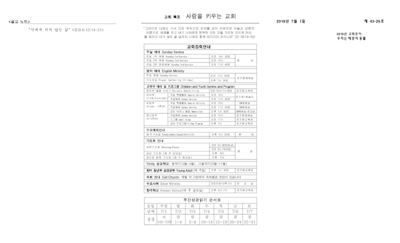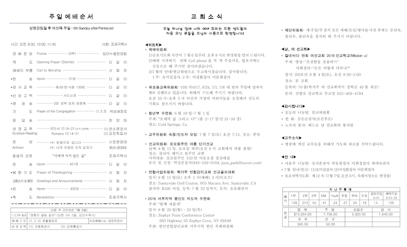 2018년 07월 01일 Publish on July 01,2018 | 교회사무실 페이지 정보 작성자 교회사무실 댓글 0건 조회 6,493회 작성일 18-07-01 11:39 목록 본문 이전글2018년 07월 08일 18.07.08 다음글2018년 06월 24일 18.07.01 댓글 0 댓글목록 등록된 댓글이 없습니다. 목록
