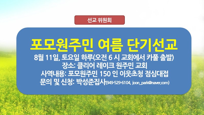 문의 및 신청: 박성준집사(949-529-6104, joon_park@naver.com)