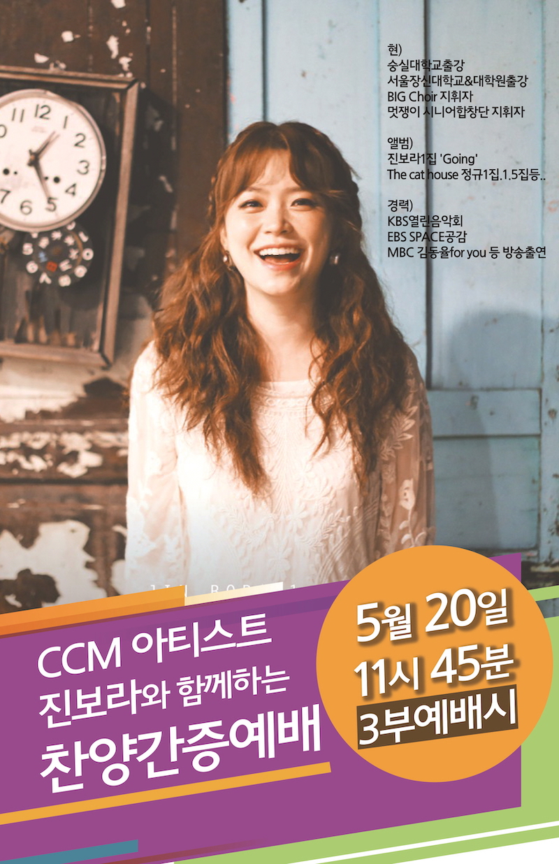 찬양간증집회 - CCM아티스트 진보라 Publish on May 02,2018 | 관리자