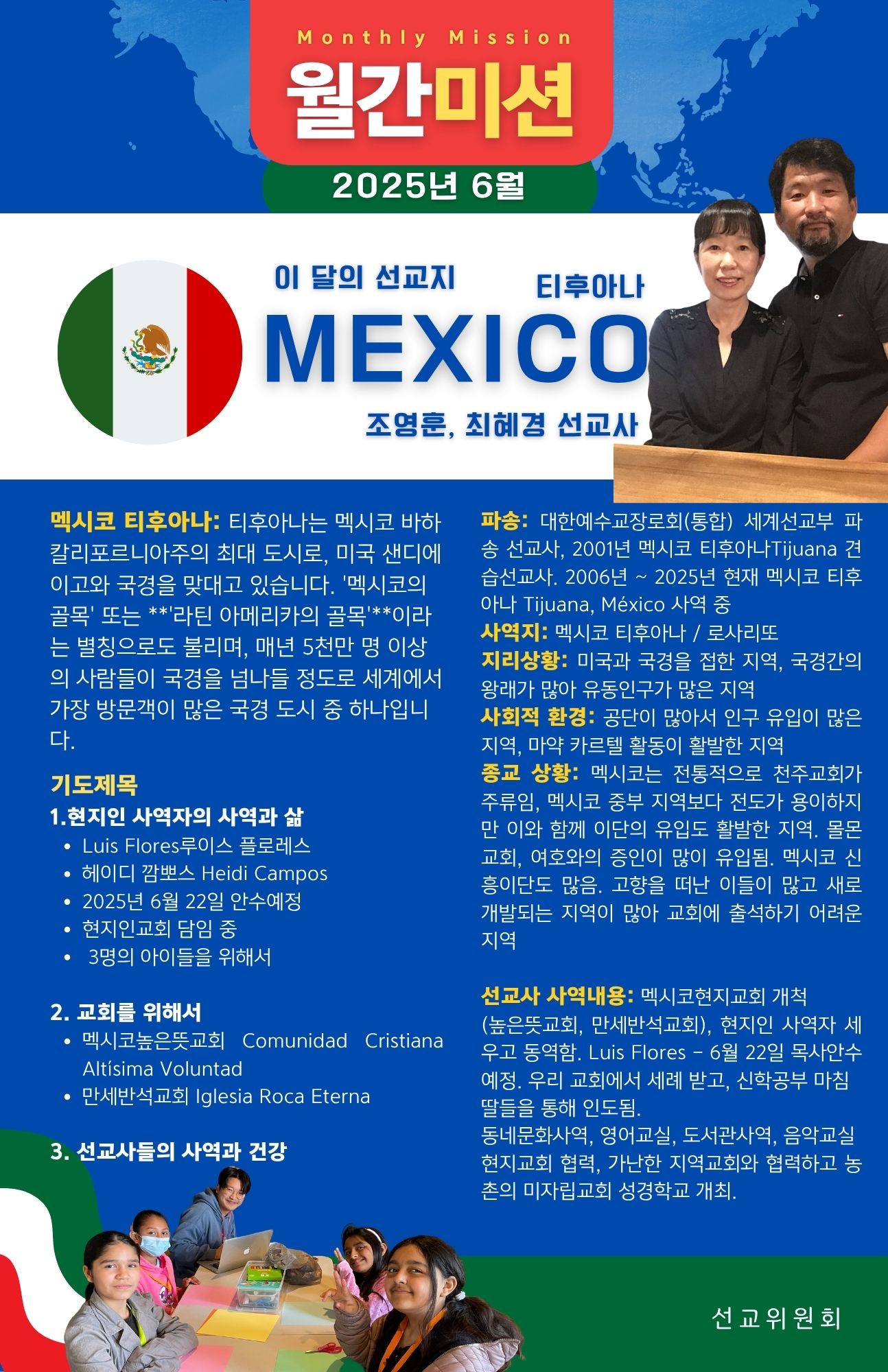 월간미션 [6월] 멕시코 - 조영훈 선교사 Publish on June 08,2025 | 관리자