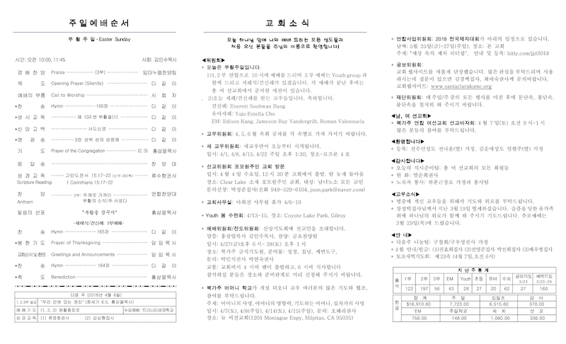 2018년 04월 01일 - 부활주일 Publish on April 01,2018 | 교회사무실 페이지 정보 작성자 교회사무실 댓글 0건 조회 6,620회 작성일 18-04-01 13:18 목록 본문 이전글오늘 세례/견신례를 받는 교우들입니다. 축하합니다. 18.04.01 다음글2018년 03월 25일 18.04.01 댓글 0 댓글목록 등록된 댓글이 없습니다. 목록