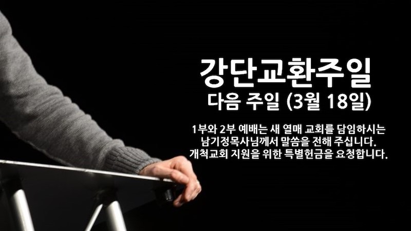 다음 주일(18 일)은 강단교환주일입니다.