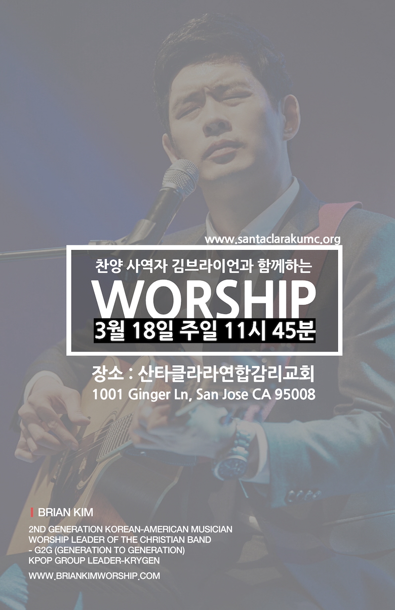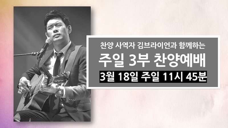 찬양사역자 김브라이언형제와 함께 뜨거운 찬양의 예배를 드립니다.