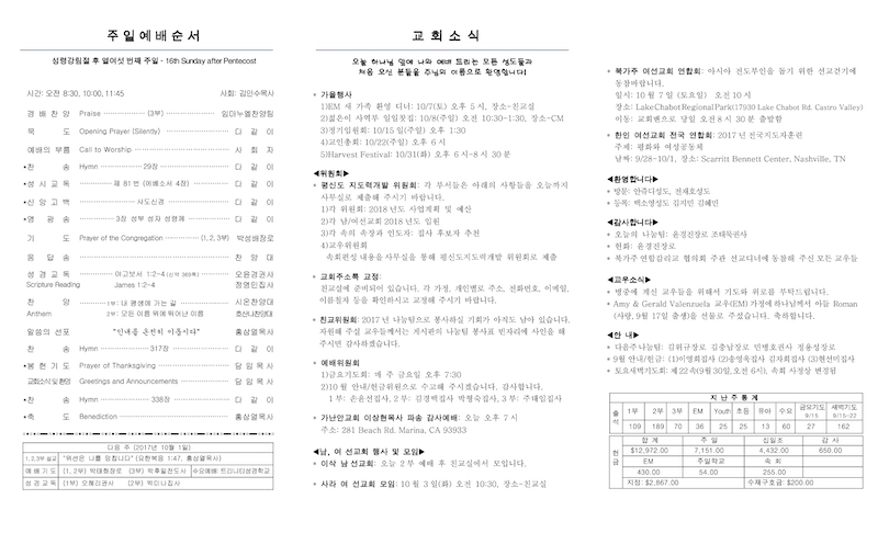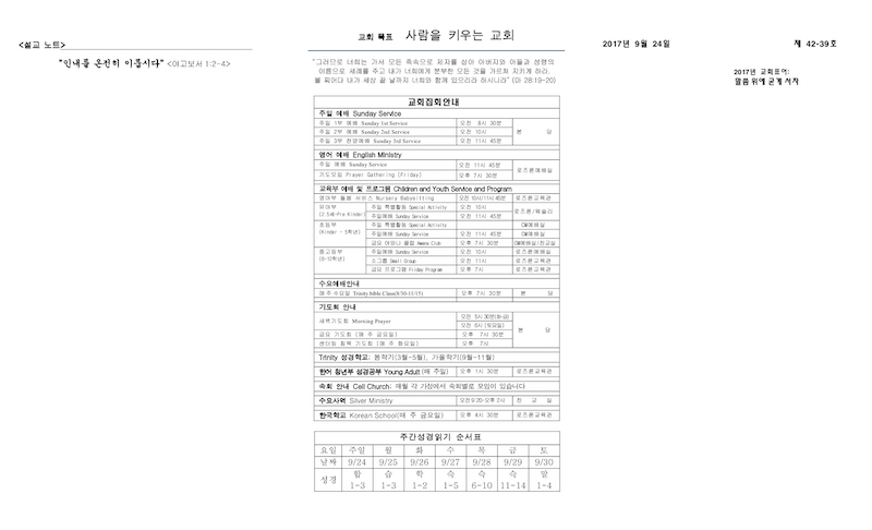 2017년 09월 24일 Publish on September 24,2017 | 교회사무실 페이지 정보 작성자 교회사무실 댓글 0건 조회 5,941회 작성일 17-09-24 11:08 목록 본문 이전글2017년 10월 01일 17.10.01 다음글2017년 09월 17일 17.09.17 댓글 0 댓글목록 등록된 댓글이 없습니다. 목록