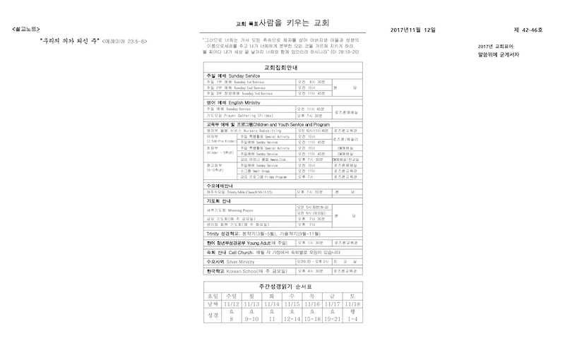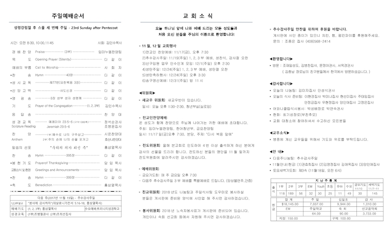 2017년 11월 12일 Publish on November 12,2017 | 교회사무실 페이지 정보 작성자 교회사무실 댓글 0건 조회 6,011회 작성일 17-11-12 11:38 목록 본문 이전글2017년 11월 19일 - 추수감사주일 17.11.19 다음글2017년 11월 05일 17.11.05 댓글 0 댓글목록 등록된 댓글이 없습니다. 목록