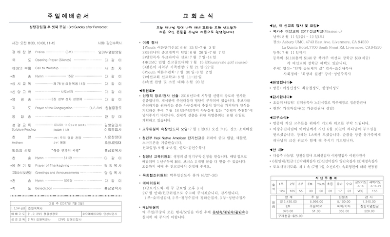 2017년 06월 25일 Publish on June 25,2017 | 교회사무실 페이지 정보 작성자 교회사무실 댓글 0건 조회 6,077회 작성일 17-06-25 11:45 목록 본문 이전글2017년 07월 02일 17.07.02 다음글2017년 06월 18일 - 졸업축하주일 17.06.18 댓글 0 댓글목록 등록된 댓글이 없습니다. 목록