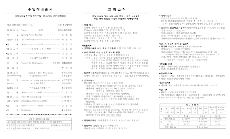 2017년 07월 30일 Publish on July 30,2017 | 교회사무실 페이지 정보 작성자 교회사무실 댓글 0건 조회 5,900회 작성일 17-07-30 11:49 목록 본문 이전글2017년 08월 06일 17.08.06 다음글2017년 07월 23일 17.07.27 댓글 0 댓글목록 등록된 댓글이 없습니다. 목록