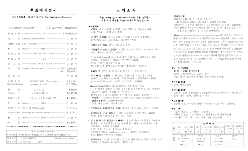 2016년 10월 23일 Publish on October 23,2016 | 교회사무실 페이지 정보 작성자 교회사무실 댓글 0건 조회 6,276회 작성일 16-10-23 09:15 목록 본문 이전글2016년 10월 30일 16.10.30 다음글2016년 10월 16일 16.10.18 댓글 0 댓글목록 등록된 댓글이 없습니다. 목록
