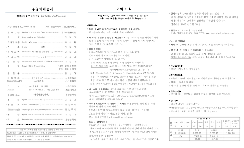 2016년 6월 5일 Publish on June 05,2016 | 교회사무실 페이지 정보 작성자 교회사무실 댓글 0건 조회 6,527회 작성일 16-06-05 10:48 목록 본문 이전글2016년 6월 12일 16.06.12 다음글2016년 5월 29일 16.05.29 댓글 0 댓글목록 등록된 댓글이 없습니다. 목록
