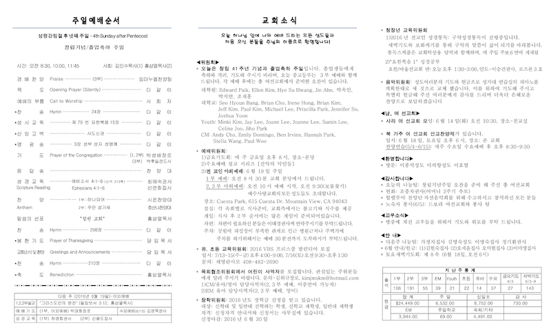 2016년 6월 12일 Publish on June 12,2016 | 교회사무실 페이지 정보 작성자 교회사무실 댓글 0건 조회 6,454회 작성일 16-06-12 11:19 목록 본문 이전글전 교인 야외예배 16.06.16 다음글2016년 6월 5일 16.06.05 댓글 0 댓글목록 등록된 댓글이 없습니다. 목록