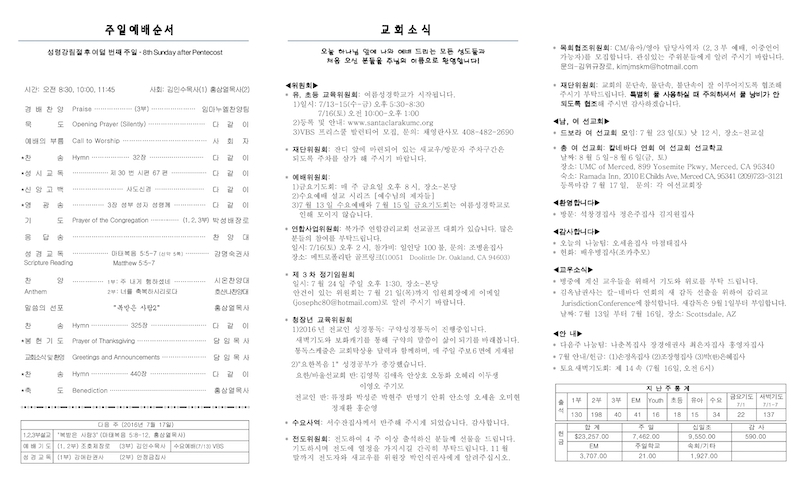 2016년 7월 10일 Publish on July 17,2016 | 교회사무실 페이지 정보 작성자 교회사무실 댓글 0건 조회 6,333회 작성일 16-07-17 11:09 목록 본문 이전글2016년 7월 17일 16.07.17 다음글2016년 7월 3일 16.07.03 댓글 0 댓글목록 등록된 댓글이 없습니다. 목록