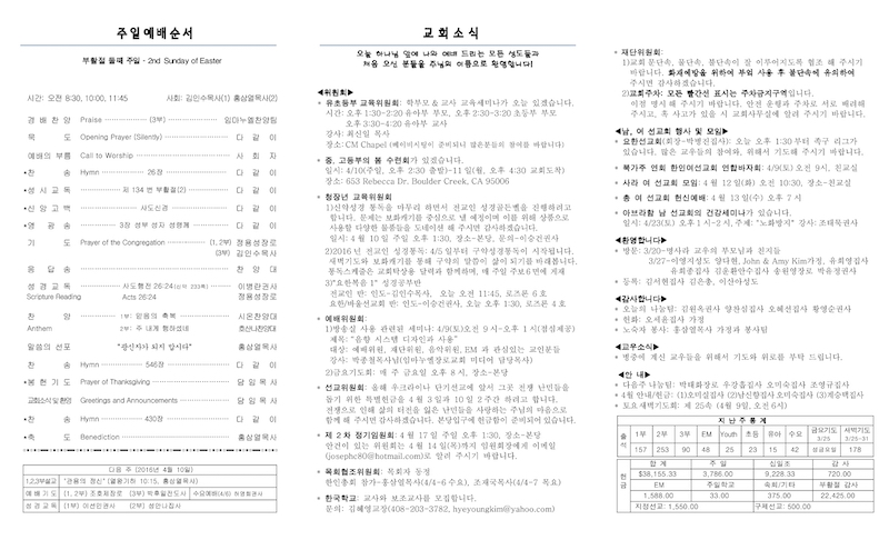 2016년 4월 3일 Publish on May 08,2016 | 교회사무실 페이지 정보 작성자 교회사무실 댓글 0건 조회 6,522회 작성일 16-05-08 12:38 목록 본문 이전글[웹팀 공지] 웹페이지 오류 및 복구 안내 16.05.04 다음글부모교육세미나 16.04.01 댓글 0 댓글목록 등록된 댓글이 없습니다. 목록