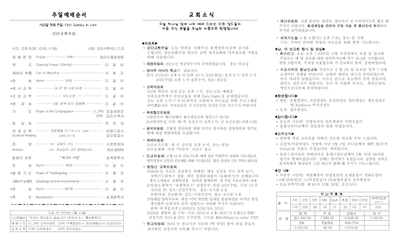 2016년 2월 14일 Publish on February 14,2016 | 교회사무실 페이지 정보 작성자 교회사무실 댓글 0건 조회 6,590회 작성일 16-02-14 11:49 목록 본문 이전글봄학기 "요한복음" 성경공부 16.02.20 다음글2016년 2월 7일 16.02.07 댓글 0 댓글목록 등록된 댓글이 없습니다. 목록