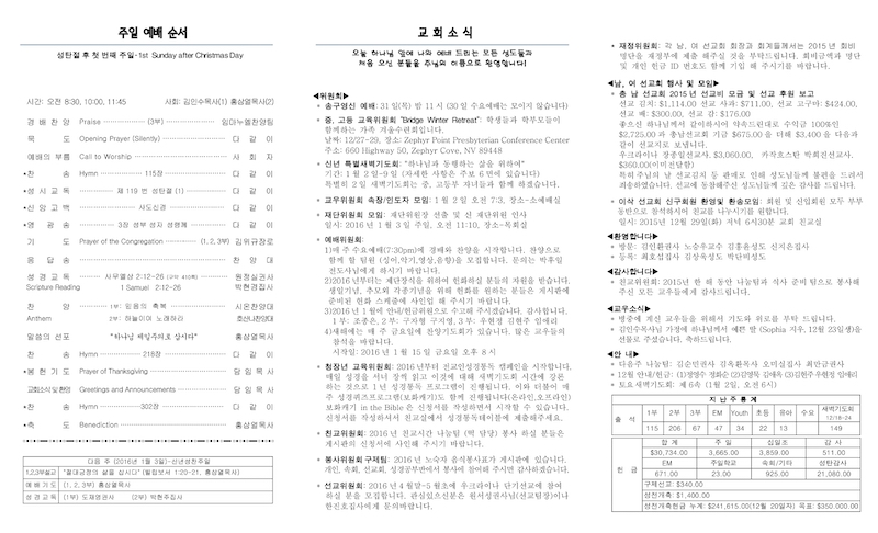 2015년 12월 27일 Publish on December 27,2015 | 교회사무실 페이지 정보 작성자 교회사무실 댓글 0건 조회 6,673회 작성일 15-12-27 11:46 목록 본문 이전글2016년 1월 3일 16.01.03 다음글2016 신년특별새벽기도회 15.12.26 댓글 0 댓글목록 등록된 댓글이 없습니다. 목록