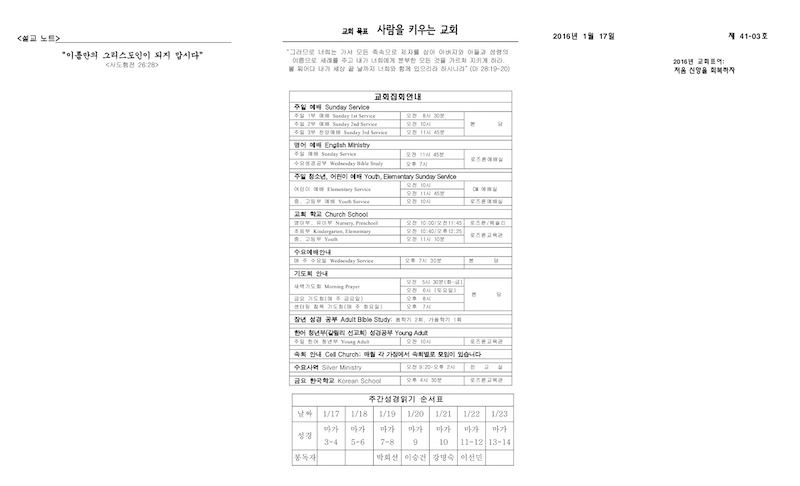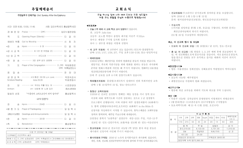 2016년 1월 17일 Publish on January 17,2016 | 교회사무실 페이지 정보 작성자 교회사무실 댓글 0건 조회 6,730회 작성일 16-01-17 11:29 목록 본문 이전글2016년 1월 24일 16.01.24 다음글2016년 1월 10일 16.01.10 댓글 0 댓글목록 등록된 댓글이 없습니다. 목록