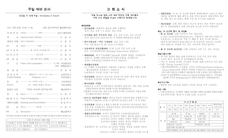 2015년 12월 6일 Publish on December 06,2015 | 교회사무실 페이지 정보 작성자 교회사무실 댓글 0건 조회 6,410회 작성일 15-12-06 11:15 목록 본문 이전글"Bridge Winter Retreat“ 15.12.12 다음글북가주 여선교회 연합회 송년예배 15.12.03 댓글 0 댓글목록 등록된 댓글이 없습니다. 목록