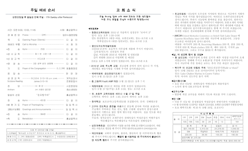 2015년 9월 20일 Publish on September 20,2015 | 교회사무실 페이지 정보 작성자 교회사무실 댓글 0건 조회 6,541회 작성일 15-09-20 10:35 목록 본문 이전글부모&교사 세미나 15.09.21 다음글2015년 9월 13일 15.09.13 댓글 0 댓글목록 등록된 댓글이 없습니다. 목록