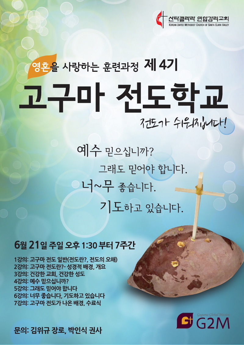고구마 전도학교 훈련을 수료를 축하합니다.