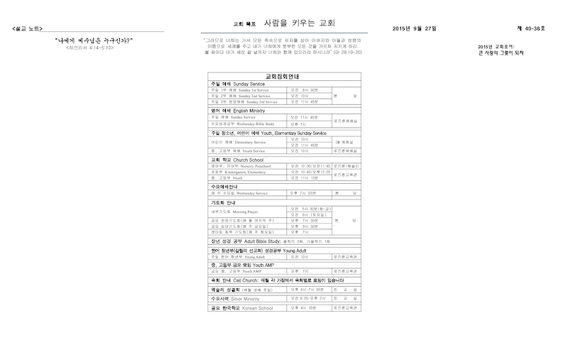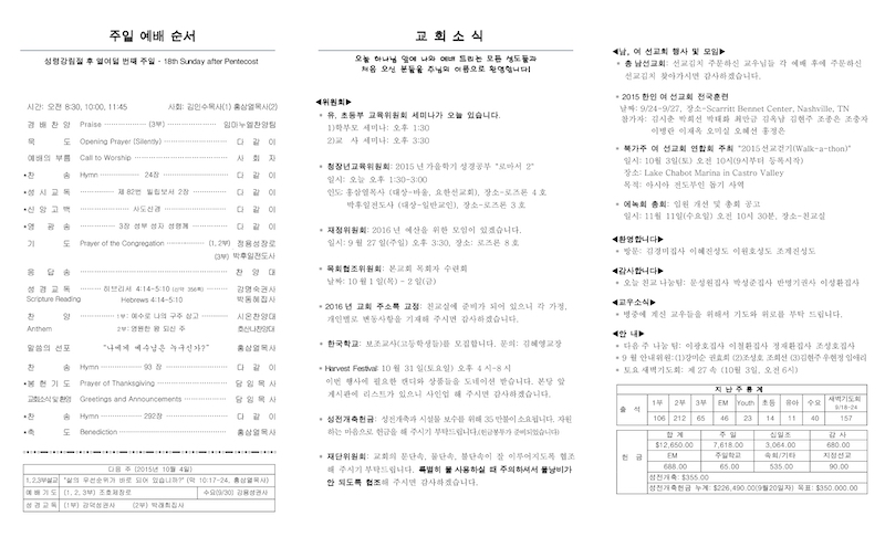 2015년 9월 27일 Publish on September 27,2015 | 교회사무실 페이지 정보 작성자 교회사무실 댓글 0건 조회 6,576회 작성일 15-09-27 11:58 목록 본문 이전글Harvest Festival 2015 15.10.01 다음글북가주 여 선교회 연합회 주최 "2015선교걷기(Walk-a-thon)" 15.09.23 댓글 0 댓글목록 등록된 댓글이 없습니다. 목록