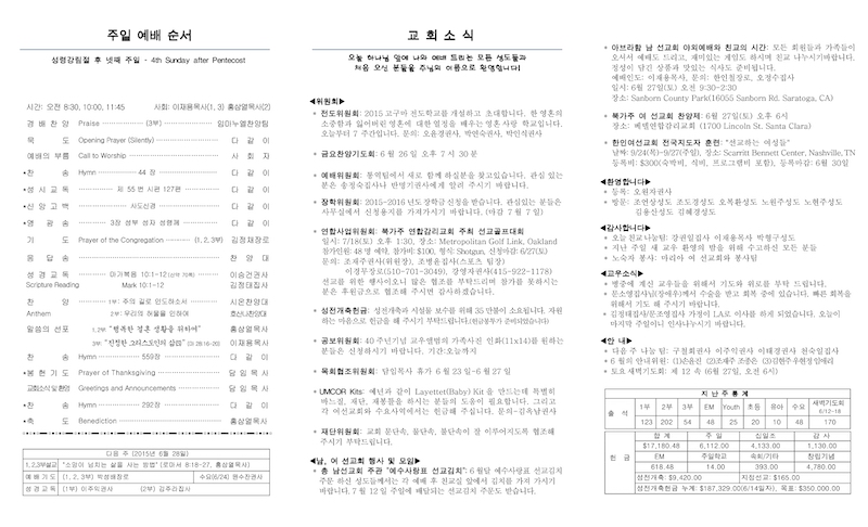2015년 6월 21일 Publish on June 21,2015 | 교회사무실 페이지 정보 작성자 교회사무실 댓글 0건 조회 6,808회 작성일 15-06-21 11:45 목록 본문 이전글2015년 6월 28일 15.06.28 다음글2015년 6월 14일 15.06.14 댓글 0 댓글목록 등록된 댓글이 없습니다. 목록
