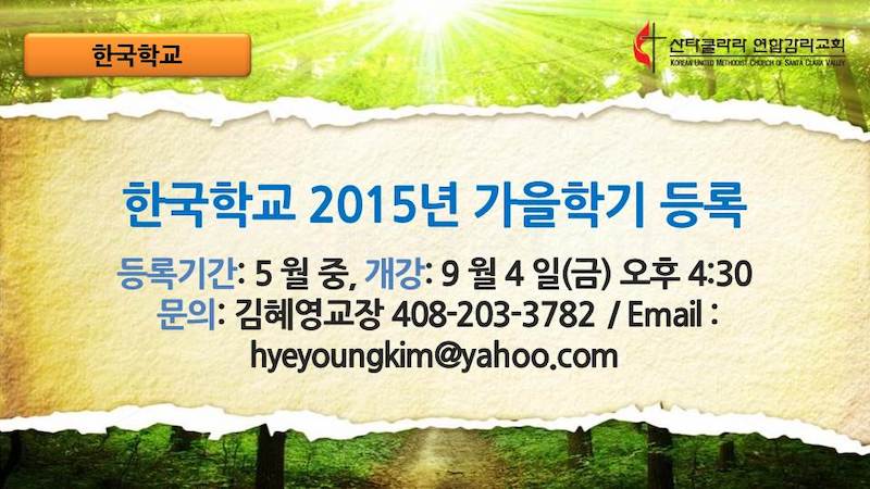 한국학교 2015년 가을학기 등록 Publish on May 30,2015 | 관리자