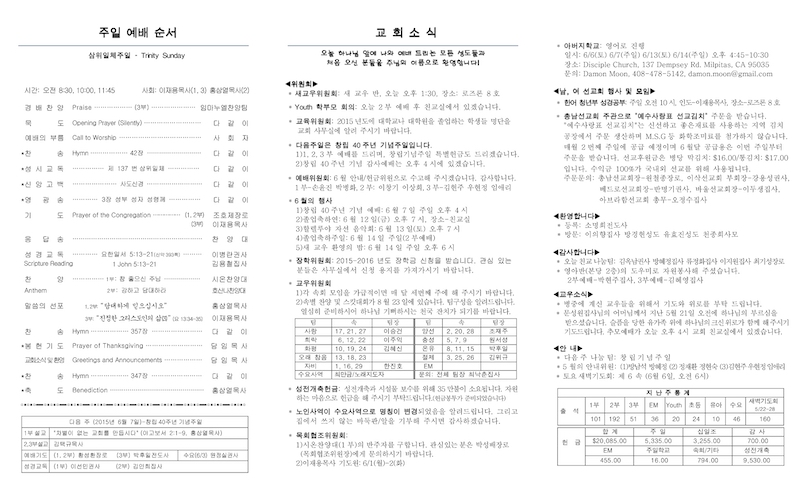 2015년 5월 31일 Publish on May 31,2015 | 교회사무실 페이지 정보 작성자 교회사무실 댓글 0건 조회 6,468회 작성일 15-05-31 13:47 목록 본문 이전글2015년 6월 7일-창립기념주일 15.06.07 다음글6월 행사안내 15.05.30 댓글 0 댓글목록 등록된 댓글이 없습니다. 목록