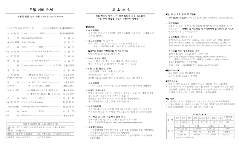 2015년 6월 7일-창립기념주일 Publish on June 07,2015 | 교회사무실 페이지 정보 작성자 교회사무실 댓글 0건 조회 6,470회 작성일 15-06-07 12:03 목록 본문 이전글"선교하는 여성들" 한인여선교회 전국지도자 훈련 15.06.11 다음글2015년 5월 31일 15.05.31 댓글 0 댓글목록 등록된 댓글이 없습니다. 목록